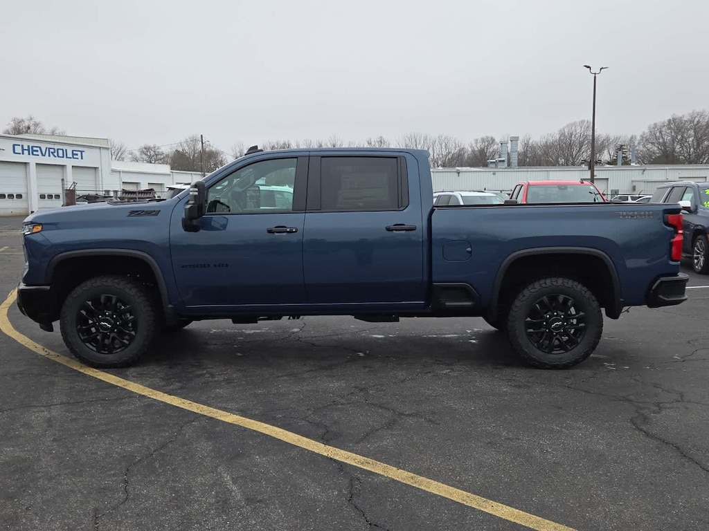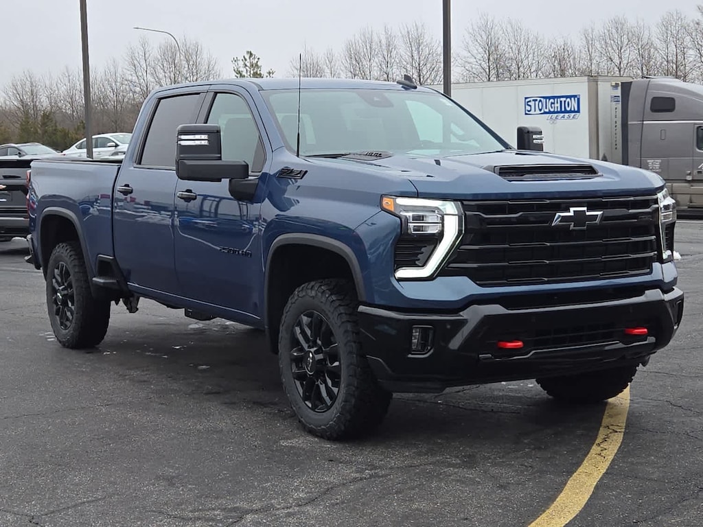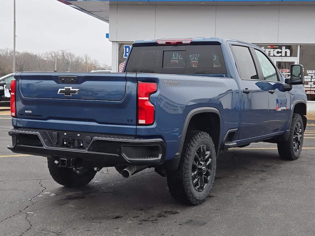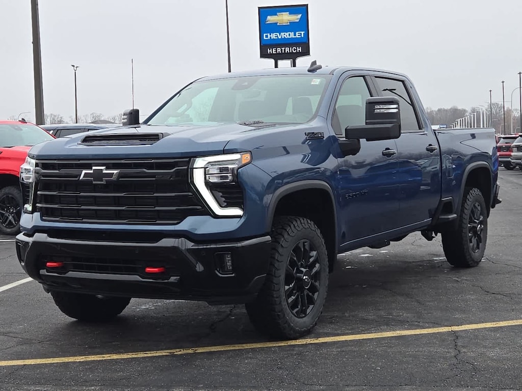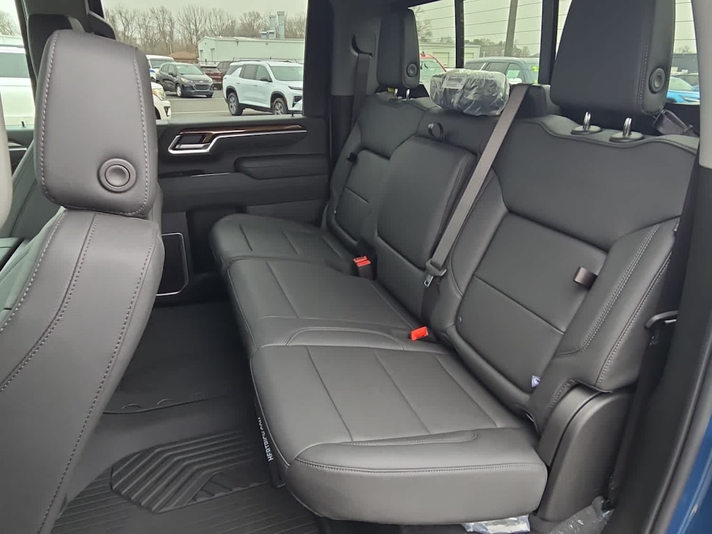 TRAIL BOSS PACKAGE Includes black grille bar with "Chevy Black Bow Tie", Black grille inserts, (SRI) 20" High gloss Black painted wheels, (VB5) High Gloss Black painted front bumper, (VT5) High Gloss Black painted rear bumper, (UGA) Red Tow Hooks, (QFG) LT275/65R20 BF Goodrich off-road tires, Black skid plate, Black badging, Black bowtie on horn pad, (DP6) High Gloss Black mirror caps, Black hood vent surround, High Gloss Black door handles and (CGN) Chevytec spray-on bedliner. Includes high-intensity LED headlamps and (DWI) trailer mirrors. SAFETY PACKAGE includes (UD5) Front and Rear Park Assist, (UKV) Trailer Side Blind Zone Alert, (UFG) Rear Cross Traffic Alert, (UV2) HD Surround Vision, (UVN) Bed View Camera and (TRG) Trailer Camera Provisions (Includes (UET) Trailering App. CONVENIENCE PACKAGE includes (UF2) Cargo bed LED lighting, (CJ2) dual-zone automatic climate control, (A2X) 10-way power driver seat including power lumbar, (N37) manual tilt/telescoping steering column, (T3U) LED fog lamps, SEATS, FRONT BUCKET with center console, for Crew Cab and Double Cab models, CONVENIENCE PACKAGE II includes (PZ8) Hitch Guidance with Hitch View, (UET) Trailering App, (A48) rear sliding power window and (UG1) Universal Home Remote. Includes (R7O) Cloth Rear Seat with Storage Package. REAR CAMERA MIRROR, INSIDE REARVIEW AUTO-DIMMING with full camera display, REMOTE START PACKAGE includes (BTV) Remote Start, (UTJ) Theft Deterrent System and (C49) rear-window defogger, Z71 OFF-ROAD PACKAGE includes (Z71) Off-Road suspension with off-road tuned twin tube Rancho shocks, (JHD) Hill Descent Control and (NZZ) skid plates (transfer case and oil pan) (Includes (QXT) LT265/70R17 all-terrain, blackwall tires and molded in color Black grille. MIRRORS, OUTSIDE POWER-ADJUSTABLE VERTICAL TRAILERING WITH HEATED AND AUTO-DIMMING UPPER GLASS lower convex mirrors, turn signal indicators, puddle lamps, (U12) perimeter lighting, auxiliary lighting, power folding/manual extending (extends 3.31" [84.25mm]) Includes (DD8) auto-dimming rearview mirror which can be upgraded to (DRZ) Rear Camera Mirror.), TAILGATE, MULTI-FLEX with six functional load/access features, NOTE: Auto release can be disabled if ball hitch is installed. See Owner's manual for details, HEAT PACKAGE includes (KA1) Heated driver and passenger seats and (KI3) Heated steering wheel, LPO, ALL-WEATHER FLOOR LINERS 1st and 2nd rows, (includes Z71 logo on front mats), AUDIO SYSTEM, CHEVROLET INFOTAINMENT 3 PREMIUM SYSTEM with Google built-in compatibility (select service plan required, terms and limitations apply) including navigation capability, 13.4" diagonal HD color touchscreen, includes multi-touch display, AM/FM stereo, Bluetooth® streaming audio for music and most phones; featuring Wireless Apple CarPlay® and Wireless Android Auto® capability for compatible phones, advanced voice recognition, in-vehicle apps, personalized profiles for infotainment and vehicle settings (STD), ENGINE, 6.6L V8 with Direct Injection and Variable Valve Timing, gasoline, (401 hp [299 kW] @ 5200 rpm, 464 lb-ft of torque [629 N-m] @ 4000 rpm) (STD), TRANSMISSION, 10-SPEED AUTOMATIC (STD), SEAT, UP-LEVEL REAR WITH STORAGE PACKAGE 60/40 Split rear seat with center armrest, right, and left seat back storage, and under seat jack storage (Crew Cabs Only) Rear seat leather appointed.