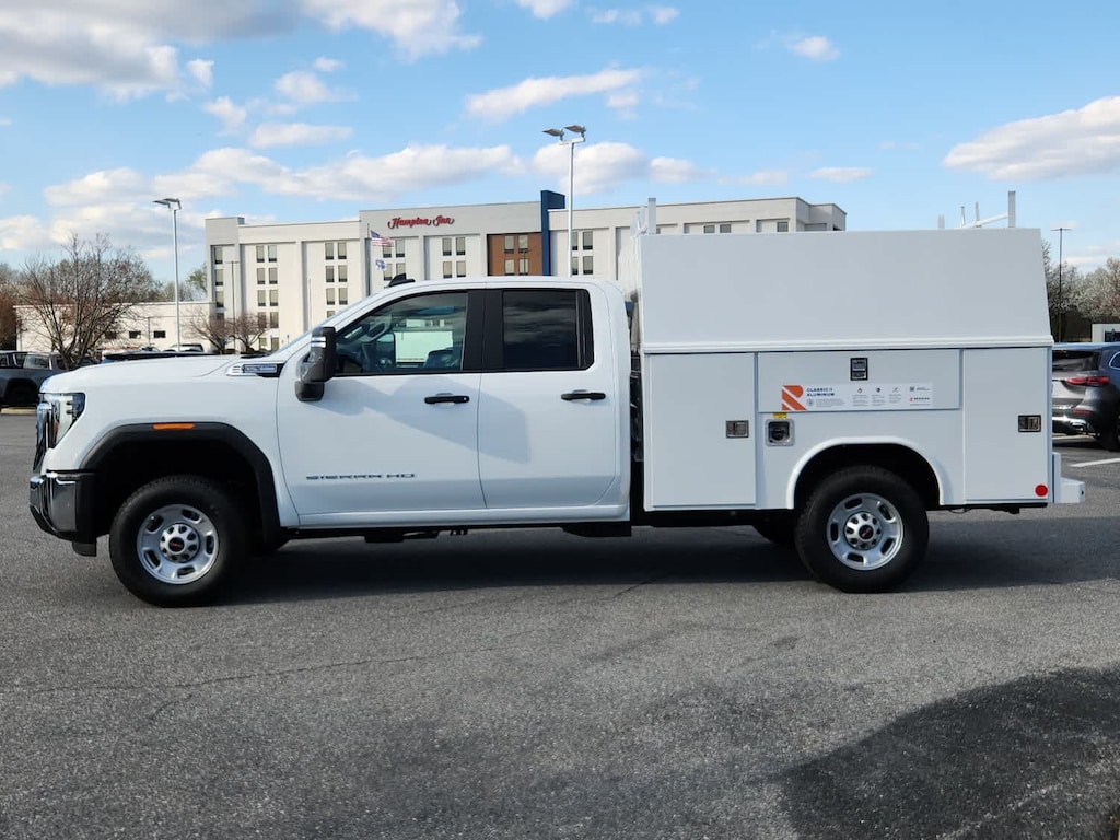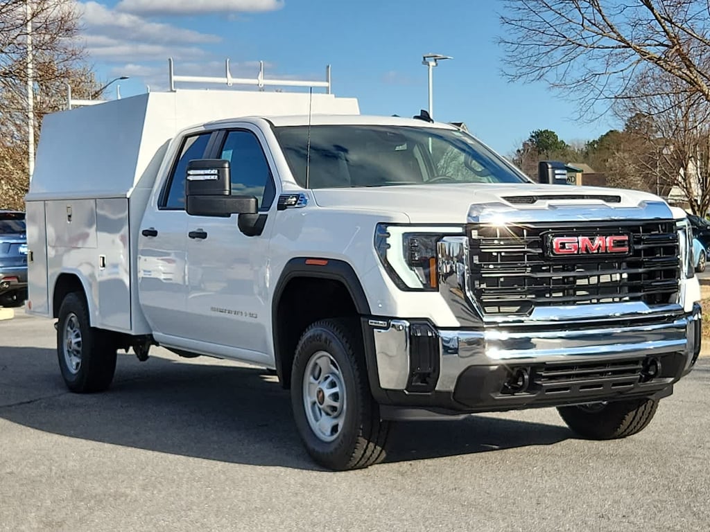 MIRRORS, OUTSIDE POWER-ADJUSTABLE VERTICAL TRAILERING with heated and auto-dimming upper glass, lower convex mirrors, turn signal indicators, puddle lamps, (U12) perimeter lighting, auxiliary lighting, power folding/manual extending (extends 3.31" [84.25mm]), Black Includes (DD8) auto-dimming rearview mirror. CONVENIENCE PACKAGE includes (QT5) EZ Lift power lock and release tailgate, (K34) Cruise control, (AKO) tinted glass, (UF2) LED cargo bed lighting, (C49) rear-window defogger and (DBG) outside power-adjustable vertical trailering with heated upper glass, GLASS, DEEP-TINTED, AUDIO SYSTEM, GMC INFOTAINMENT SYSTEM WITH 7" DIAGONAL COLOR TOUCH-SCREEN AM/FM stereo with seek-and-scan and digital clock, includes Bluetooth® streaming audio for music and select phones; featuring wireless Apple CarPlay® and Android Auto® capable (STD), ENGINE, 6.6L V8 with Direct Injection and Variable Valve Timing, gasoline, (401 hp [299 kW] @ 5200 rpm, 464 lb-ft of torque [629 N-m] @ 4000 rpm) (STD), TRANSMISSION, ALLISON 10-SPEED AUTOMATIC (STD).