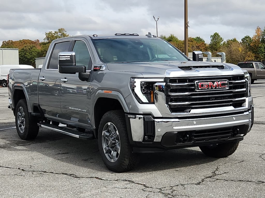 ENGINE, DURAMAX 6.6L TURBO-DIESEL V8, B20-DIESEL COMPATIBLE (470 hp [350.5 kW] @ 2800 rpm, 975 lb-ft of torque [1322 Nm] @ 1600 rpm) (Includes (K05) engine block heater.), SLT CONVENIENCE PACKAGE includes (A50) bucket seats with (D07) center console, (KQV) ventilated front seats, (UBC) 2 USB Charge/Data ports first row inside center console, (U01) Roof Marker Lamps, (K4C) Wireless Charging and (UQA) Bose Premium Audio System, SIERRA HD PRO SAFETY PLUS PACKAGE includes (UKV) Trailer Side Blind Zone Alert, (UFG) Rear Cross Traffic Alert, (UVN) Bed View Camera, (UV2) HD Surround Vision, (UD5) Front and rear park assist and (TRG) Trailer Camera Provisions Includes (HS1) Safety Alert Seat.), WHEELS, 20" (50.8 CM) BRIGHT FACE WHEELS with dark painted pockets, SLT PREFERRED PACKAGE includes (KA6) rear heated seats, (A48) rear sliding power window, (UG1) Universal Home Remote and (KSG) Adaptive Cruise Control, LPO, ASSIST STEP AND FLOOR LINER PACKAGE includes (RIA) All-weather floor liner, LPO and choice of assist step (VXH) 6" Chrome rectangular tubular assist step, LPO or (VXJ) 4" Chrome round tubular assist step, LPO on SLE, TAILGATE, GMC MULTIPRO TAILGATE with six functional load/access features NOTE: Auto release can be disabled if ball hitch is installed. See Owner's manual for details, AUDIO SYSTEM, 13.4" DIAGONAL PREMIUM GMC INFOTAINMENT SYSTEM WITH GOOGLE BUILT IN APPS SUCH AS NAVIGATION AND VOICE ASSISTANCE includes color touch-screen, multi-touch display, AM/FM stereo, Bluetooth® streaming audio for music and most phones; featuring wireless Android Auto® and Apple CarPlay® capability for compatible phones (STD), TRANSMISSION, 10-SPEED AUTOMATIC.